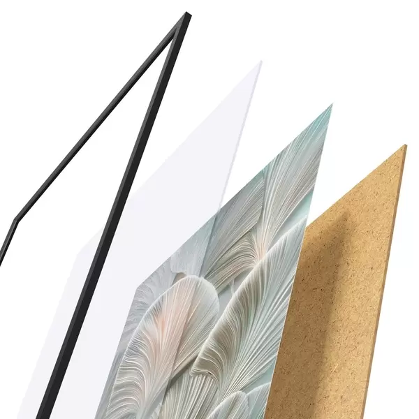 Plagát sa skladá z rámu, plexiskla, vytlačeného obrazu a podkladu z drevotriesky. Plagát možno okamžite zavesiť na stenu vďaka úchytom na zadnej strane.