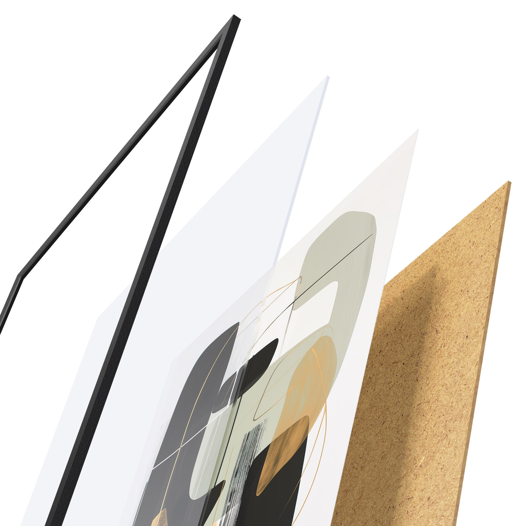 Plagát sa skladá z rámu, plexiskla, vytlačeného obrazu a podkladu z drevotriesky. Plagát možno okamžite zavesiť na stenu vďaka úchytom na zadnej strane.
