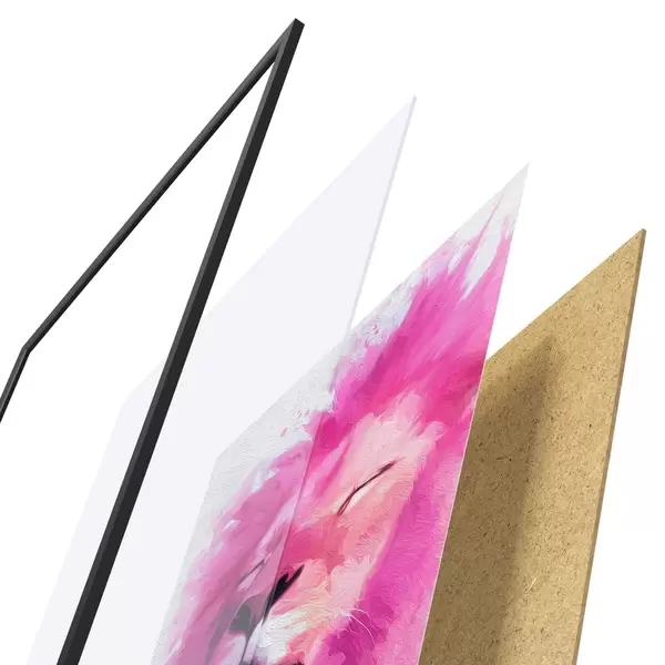 Plagát sa skladá z rámu, plexiskla, vytlačeného obrazu a podkladu z drevotriesky. Plagát možno okamžite zavesiť na stenu vďaka úchytom na zadnej strane.