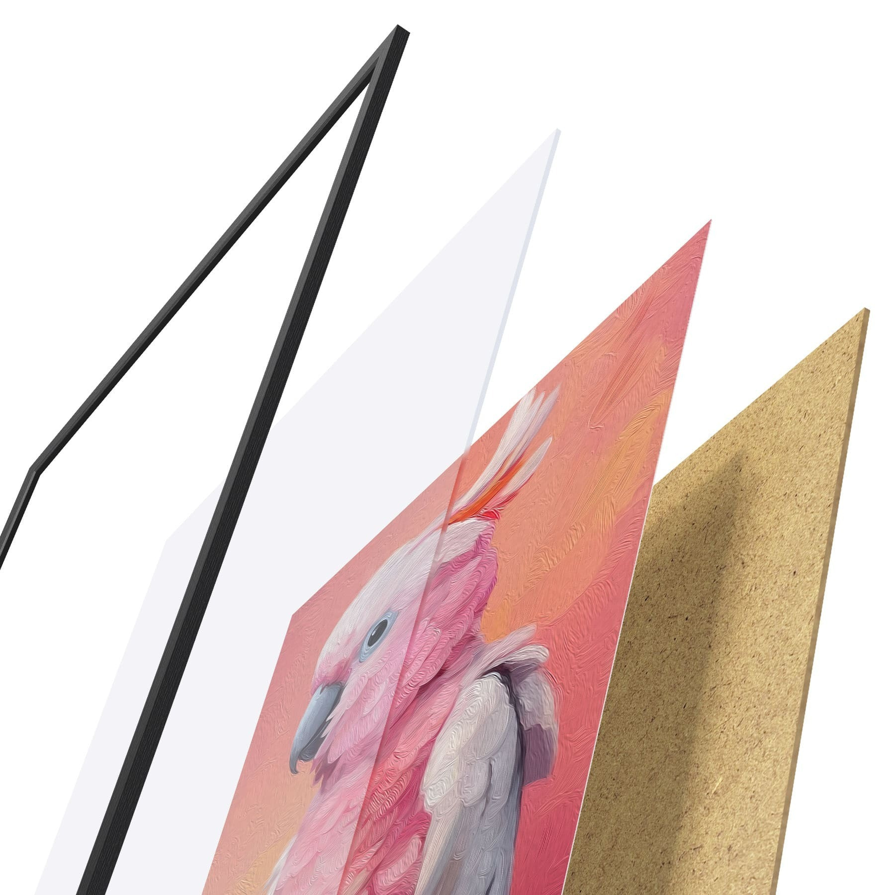Plagát sa skladá z rámu, plexiskla, vytlačeného obrazu a podkladu z drevotriesky. Plagát možno okamžite zavesiť na stenu vďaka úchytom na zadnej strane.