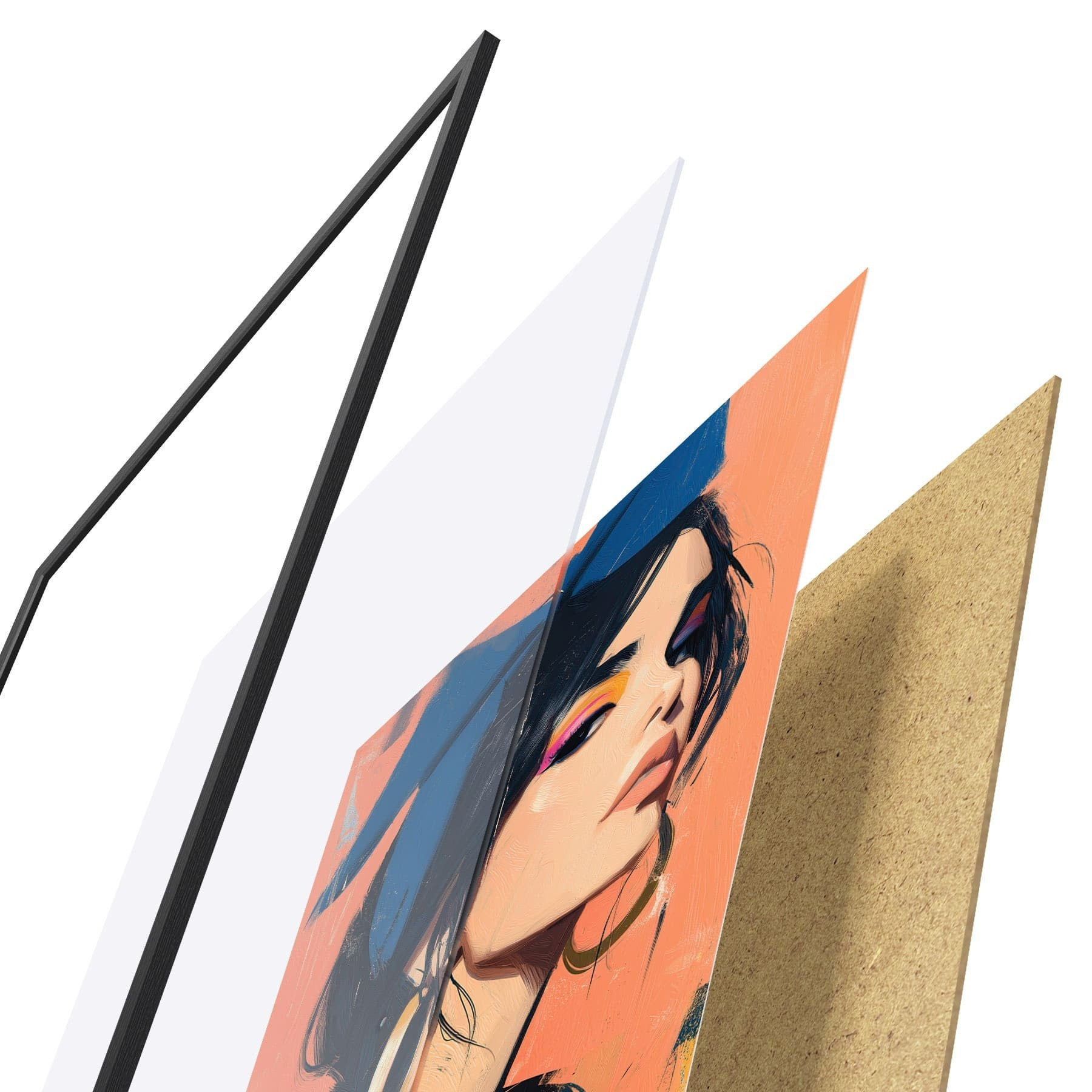 Plagát sa skladá z rámu, plexiskla, vytlačeného obrazu a podkladu z drevotriesky. Plagát možno okamžite zavesiť na stenu vďaka úchytom na zadnej strane.