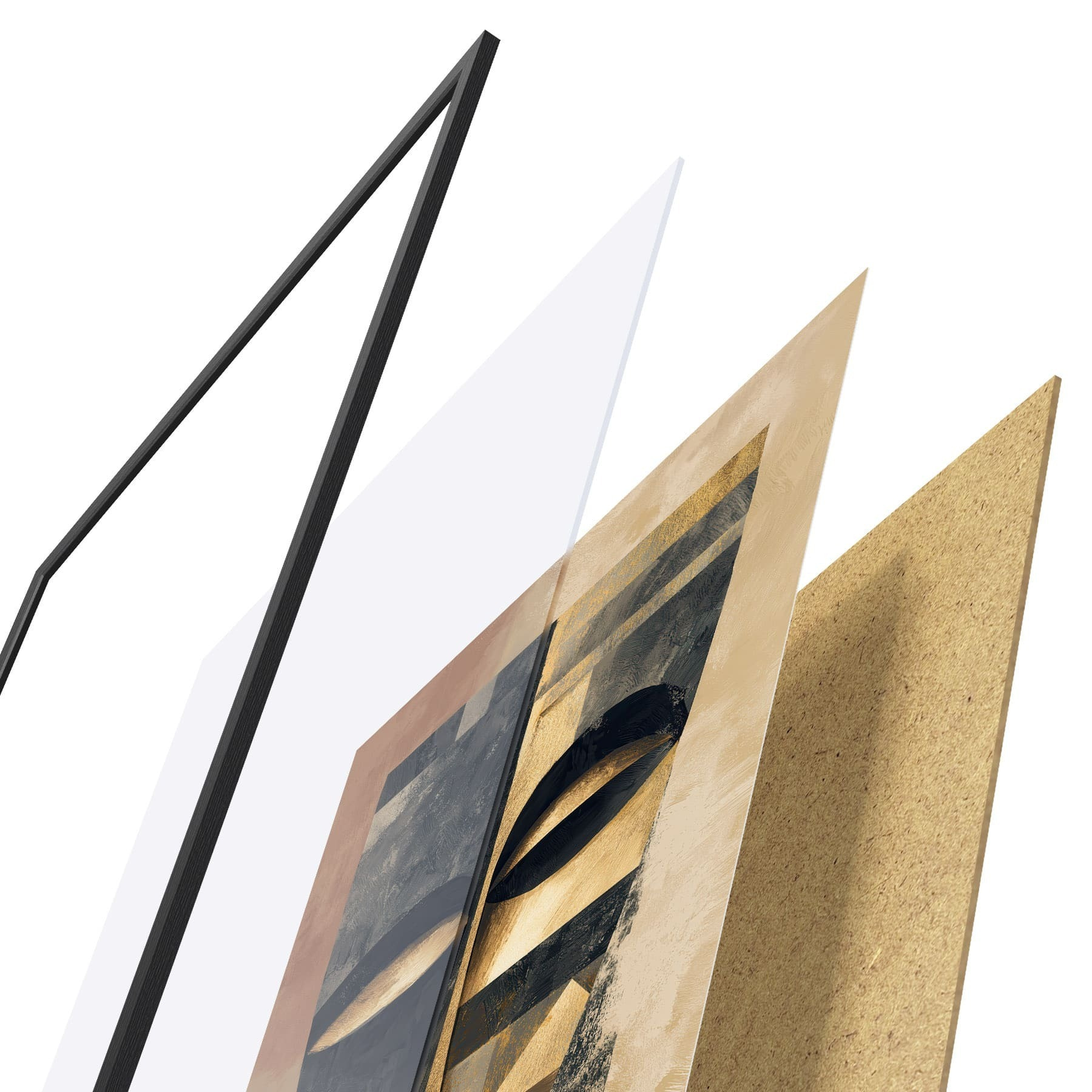 Plagát sa skladá z rámu, plexiskla, vytlačeného obrazu a podkladu z drevotriesky. Plagát možno okamžite zavesiť na stenu vďaka úchytom na zadnej strane.
