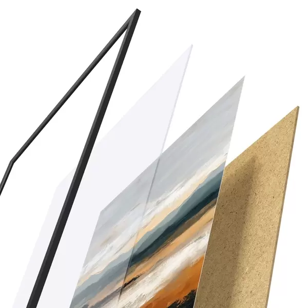 Plagát sa skladá z rámu, plexiskla, vytlačeného obrazu a podkladu z drevotriesky. Plagát možno okamžite zavesiť na stenu vďaka úchytom na zadnej strane.
