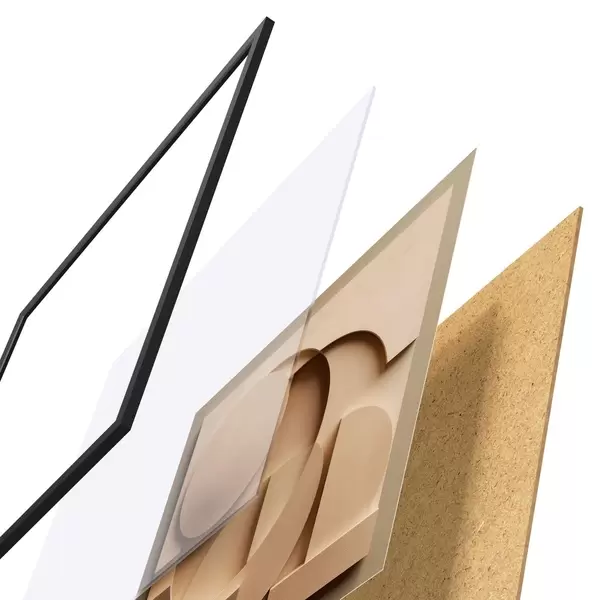 Plagát sa skladá z rámu, plexiskla, vytlačeného obrazu a podkladu z drevotriesky. Plagát možno okamžite zavesiť na stenu vďaka úchytom na zadnej strane.