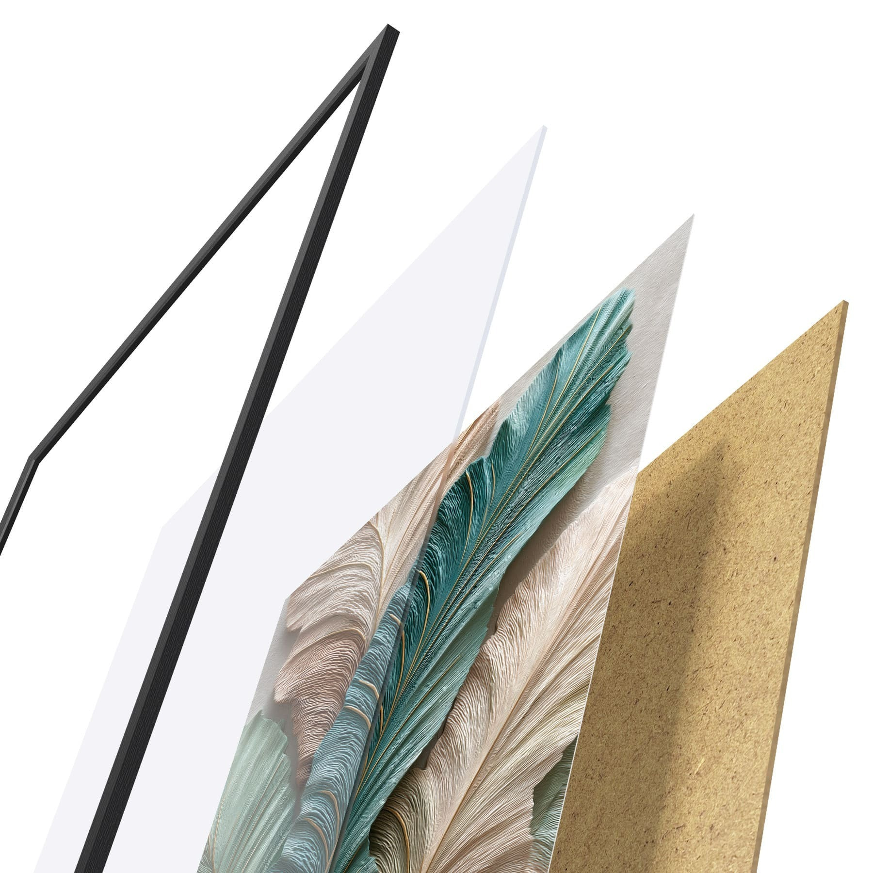 Plagát sa skladá z rámu, plexiskla, vytlačeného obrazu a podkladu z drevotriesky. Plagát možno okamžite zavesiť na stenu vďaka úchytom na zadnej strane.