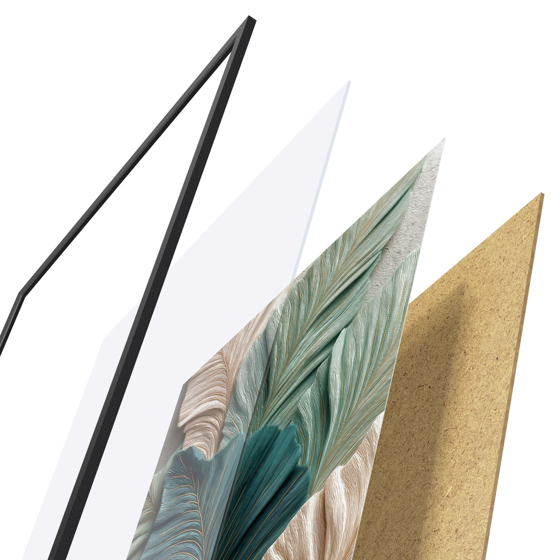 Plagát sa skladá z rámu, plexiskla, vytlačeného obrazu a podkladu z drevotriesky. Plagát možno okamžite zavesiť na stenu vďaka úchytom na zadnej strane.