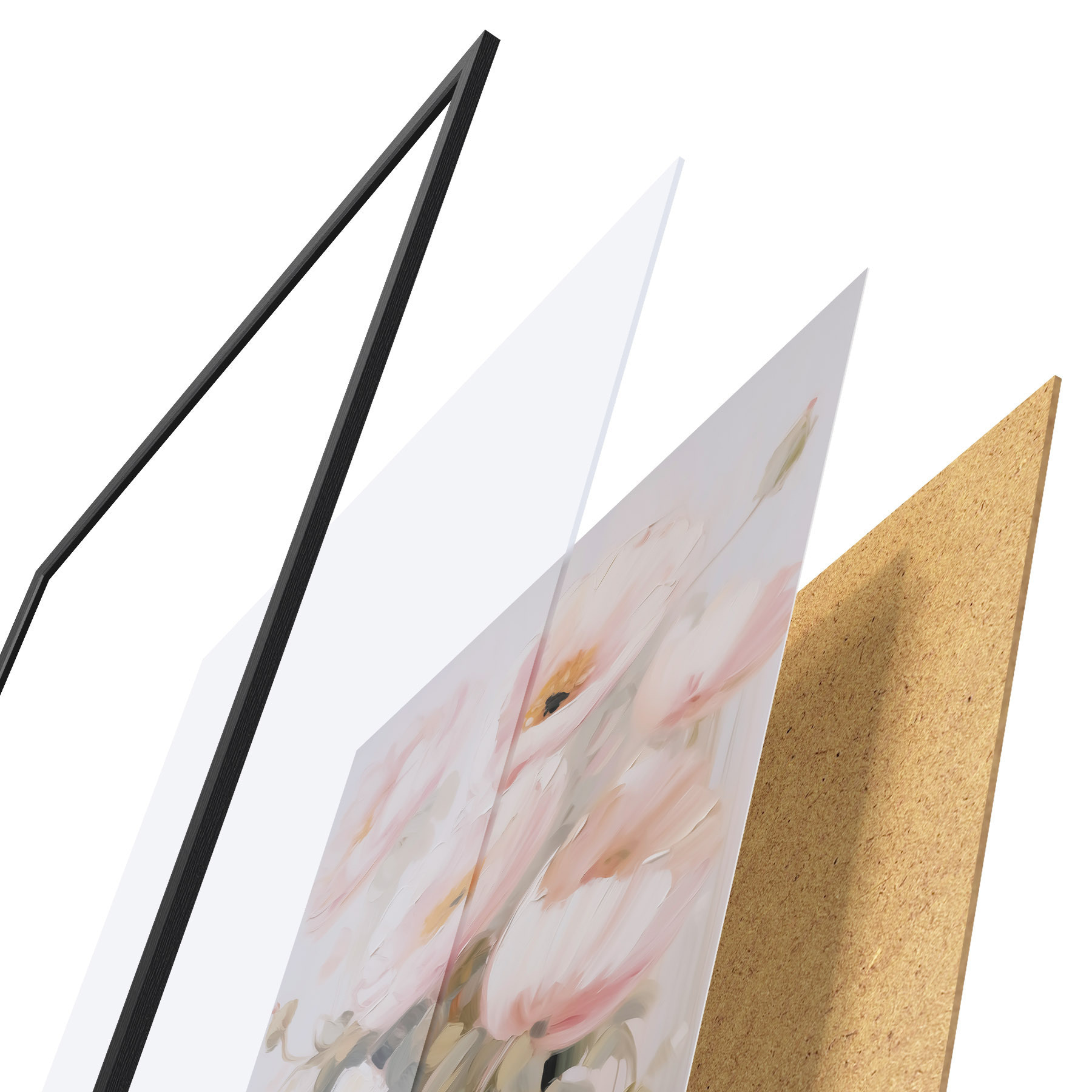 Plagát sa skladá z rámu, plexiskla, vytlačeného obrazu a podkladu z drevotriesky. Plagát možno okamžite zavesiť na stenu vďaka úchytom na zadnej strane.