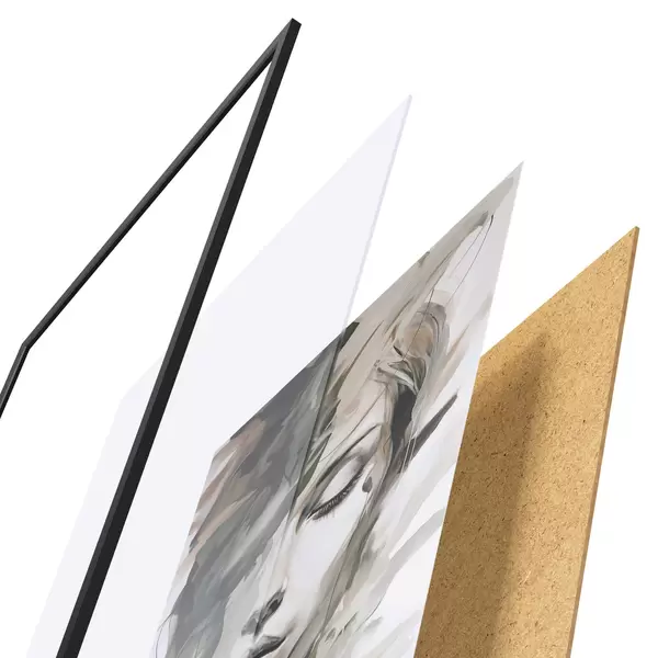 Plagát sa skladá z rámu, plexiskla, vytlačeného obrazu a podkladu z drevotriesky. Plagát možno okamžite zavesiť na stenu vďaka úchytom na zadnej strane.