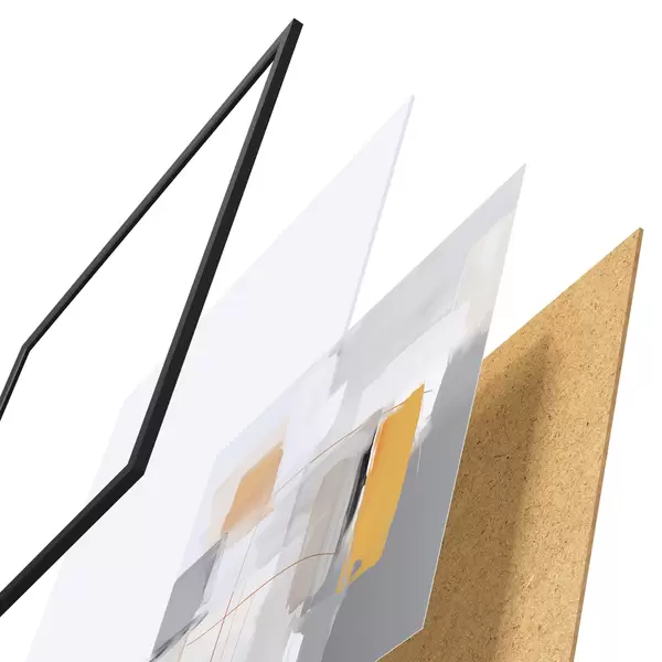 Plagát sa skladá z rámu, plexiskla, vytlačeného obrazu a podkladu z drevotriesky. Plagát možno okamžite zavesiť na stenu vďaka úchytom na zadnej strane.