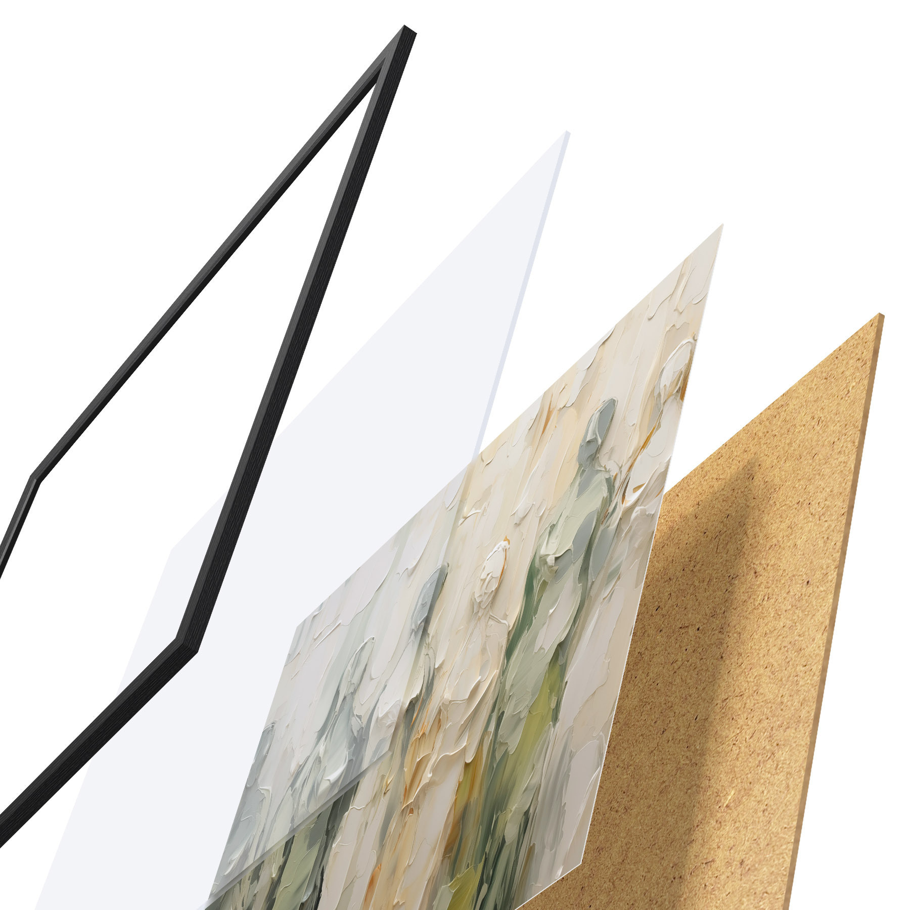 Plagát sa skladá z rámu, plexiskla, vytlačeného obrazu a podkladu z drevotriesky. Plagát možno okamžite zavesiť na stenu vďaka úchytom na zadnej strane.