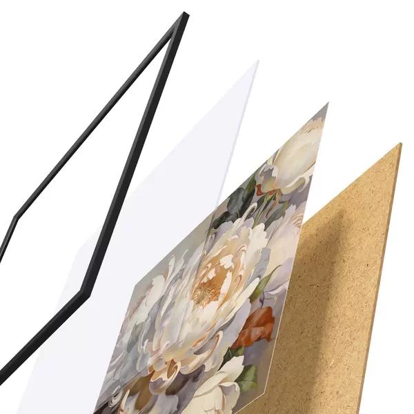 Plagát sa skladá z rámu, plexiskla, vytlačeného obrazu a podkladu z drevotriesky. Plagát možno okamžite zavesiť na stenu vďaka úchytom na zadnej strane.