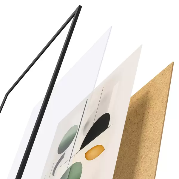 Plagát sa skladá z rámu, plexiskla, vytlačeného obrazu a podkladu z drevotriesky. Plagát možno okamžite zavesiť na stenu vďaka úchytom na zadnej strane.