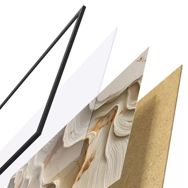 Plagát sa skladá z rámu, plexiskla, vytlačeného obrazu a podkladu z drevotriesky. Plagát možno okamžite zavesiť na stenu vďaka úchytom na zadnej strane.