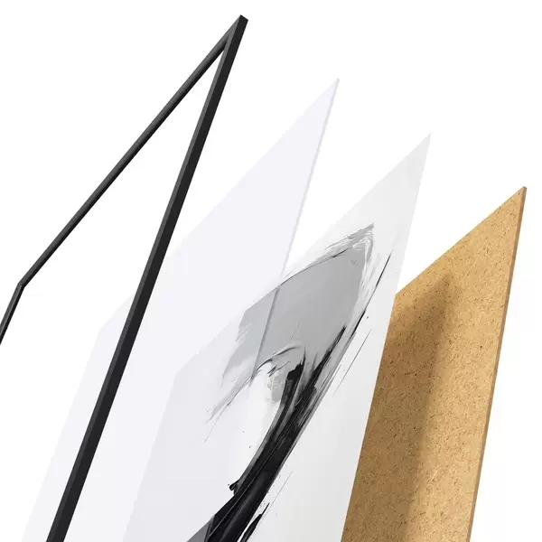 Plagát sa skladá z rámu, plexiskla, vytlačeného obrazu a podkladu z drevotriesky. Plagát možno okamžite zavesiť na stenu vďaka úchytom na zadnej strane.