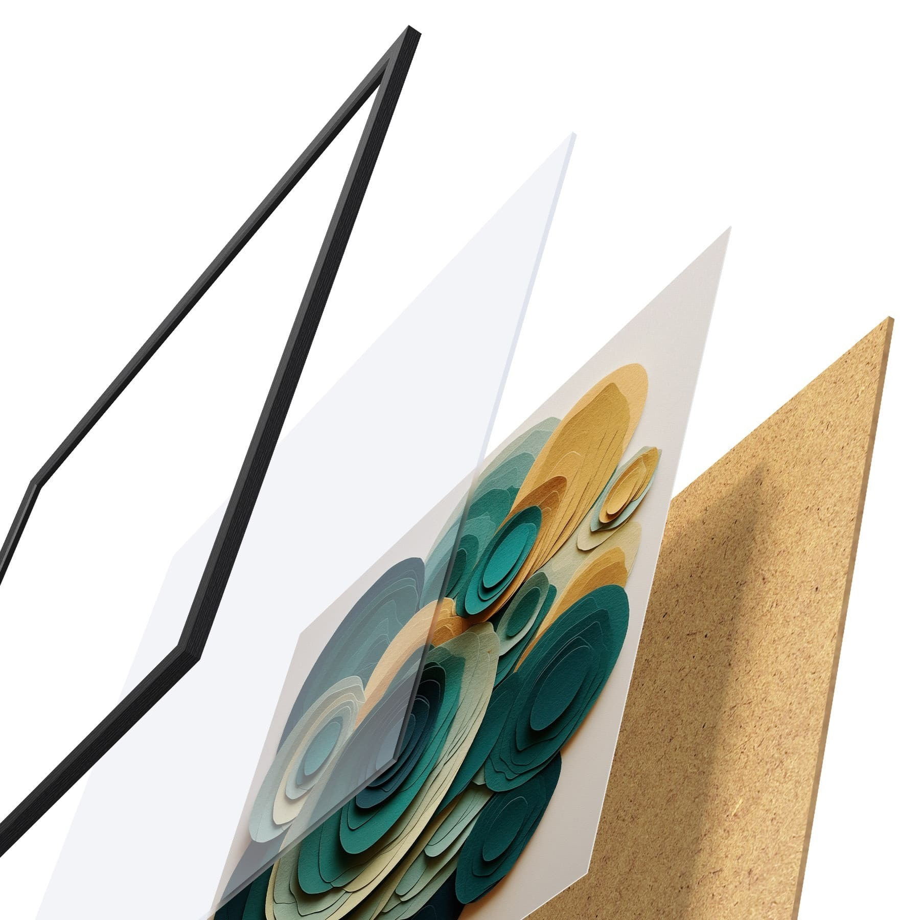 Plagát sa skladá z rámu, plexiskla, vytlačeného obrazu a podkladu z drevotriesky. Plagát možno okamžite zavesiť na stenu vďaka úchytom na zadnej strane.