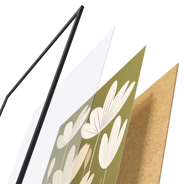 Plagát sa skladá z rámu, plexiskla, vytlačeného obrazu a podkladu z drevotriesky. Plagát možno okamžite zavesiť na stenu vďaka úchytom na zadnej strane.