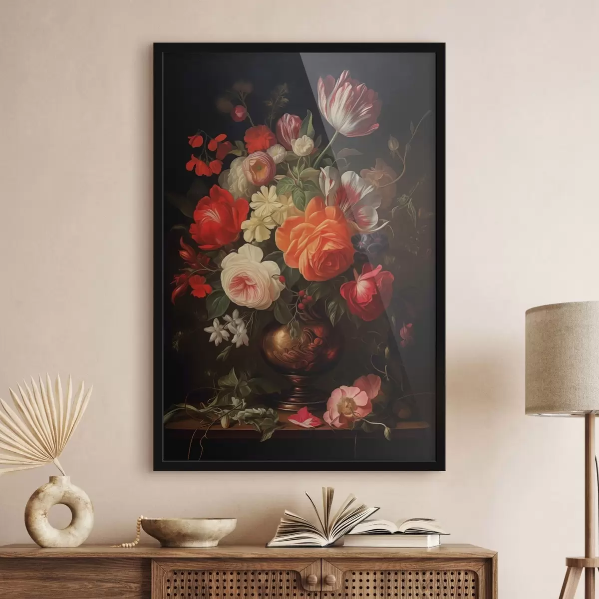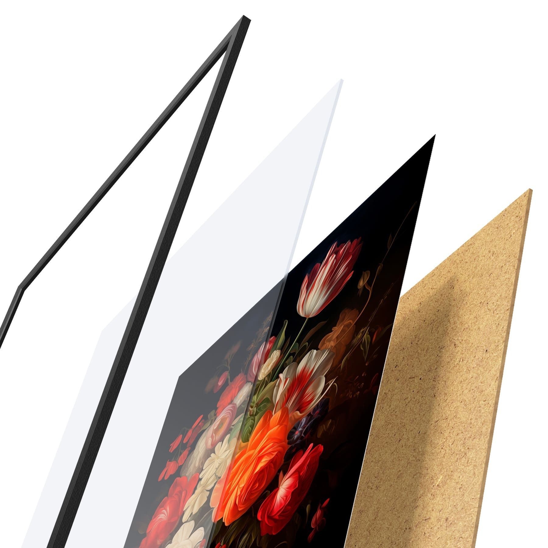 Plagát sa skladá z rámu, plexiskla, vytlačeného obrazu a podkladu z drevotriesky. Plagát možno okamžite zavesiť na stenu vďaka úchytom na zadnej strane.