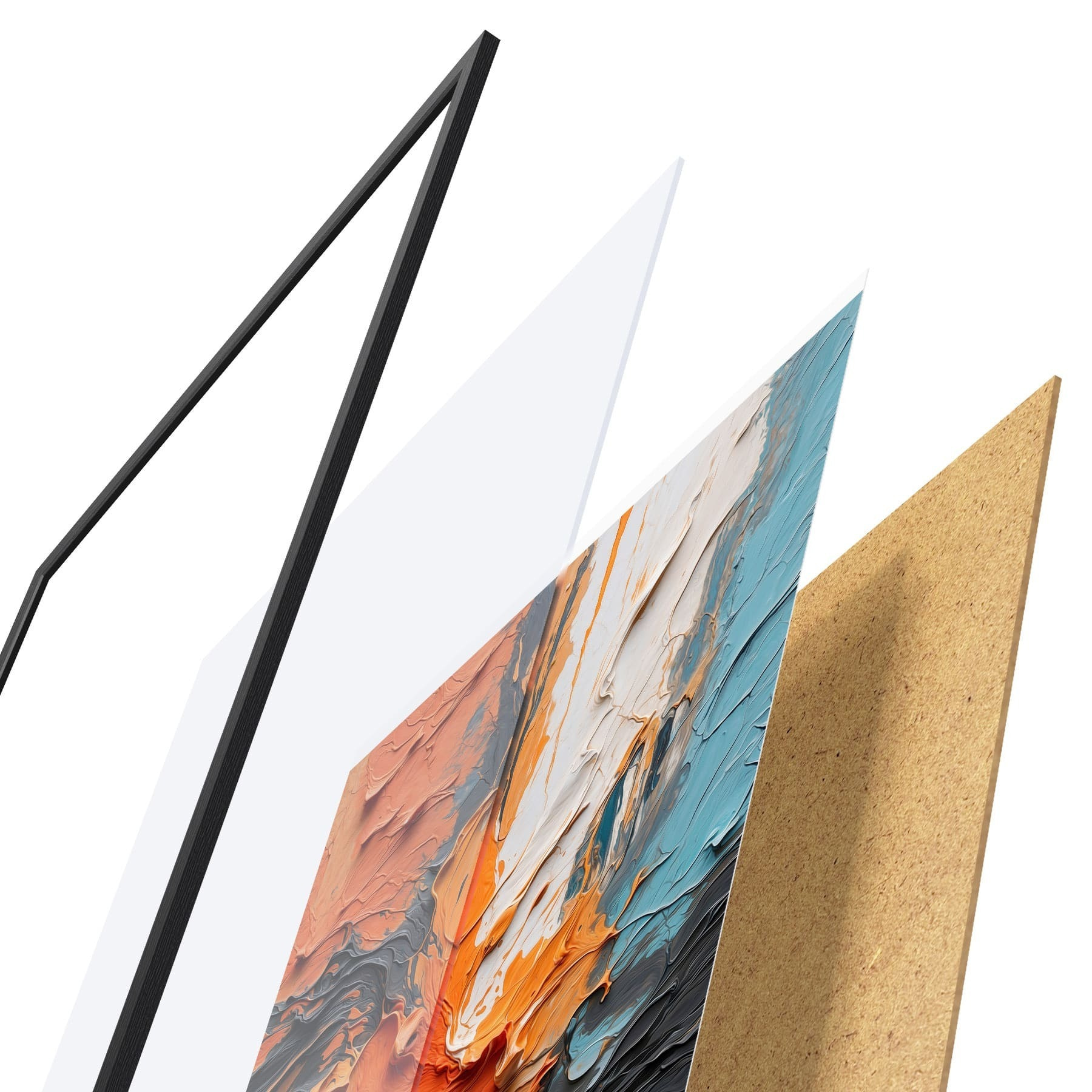 Plagát sa skladá z rámu, plexiskla, vytlačeného obrazu a podkladu z drevotriesky. Plagát možno okamžite zavesiť na stenu vďaka úchytom na zadnej strane.