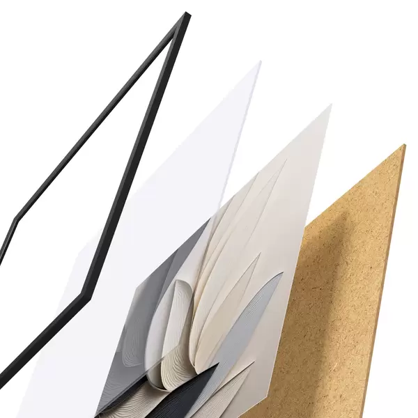 Plagát sa skladá z rámu, plexiskla, vytlačeného obrazu a podkladu z drevotriesky. Plagát možno okamžite zavesiť na stenu vďaka úchytom na zadnej strane.