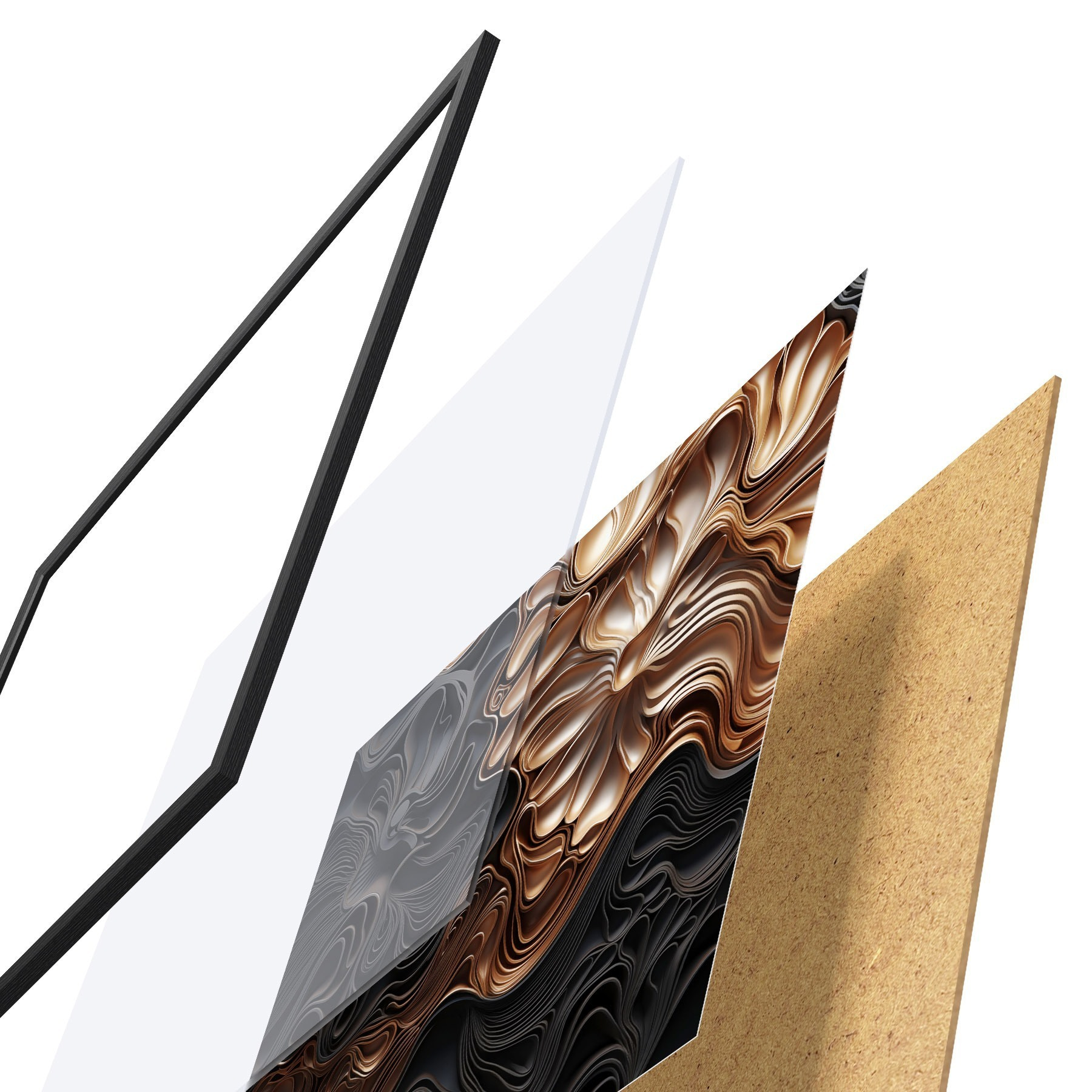 Plagát sa skladá z rámu, plexiskla, vytlačeného obrazu a podkladu z drevotriesky. Plagát možno okamžite zavesiť na stenu vďaka úchytom na zadnej strane.