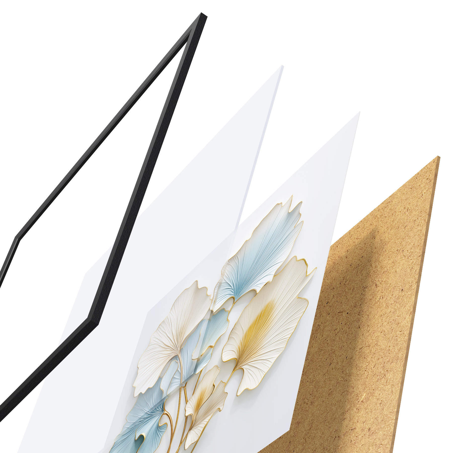 Plagát sa skladá z rámu, plexiskla, vytlačeného obrazu a podkladu z drevotriesky. Plagát možno okamžite zavesiť na stenu vďaka úchytom na zadnej strane.