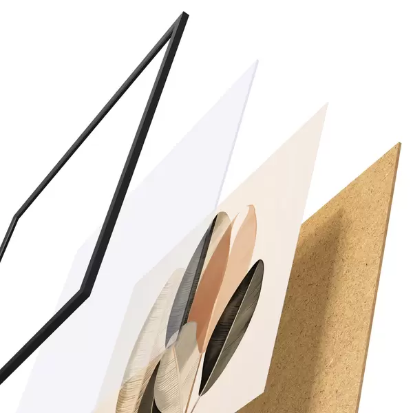 Plagát sa skladá z rámu, plexiskla, vytlačeného obrazu a podkladu z drevotriesky. Plagát možno okamžite zavesiť na stenu vďaka úchytom na zadnej strane.