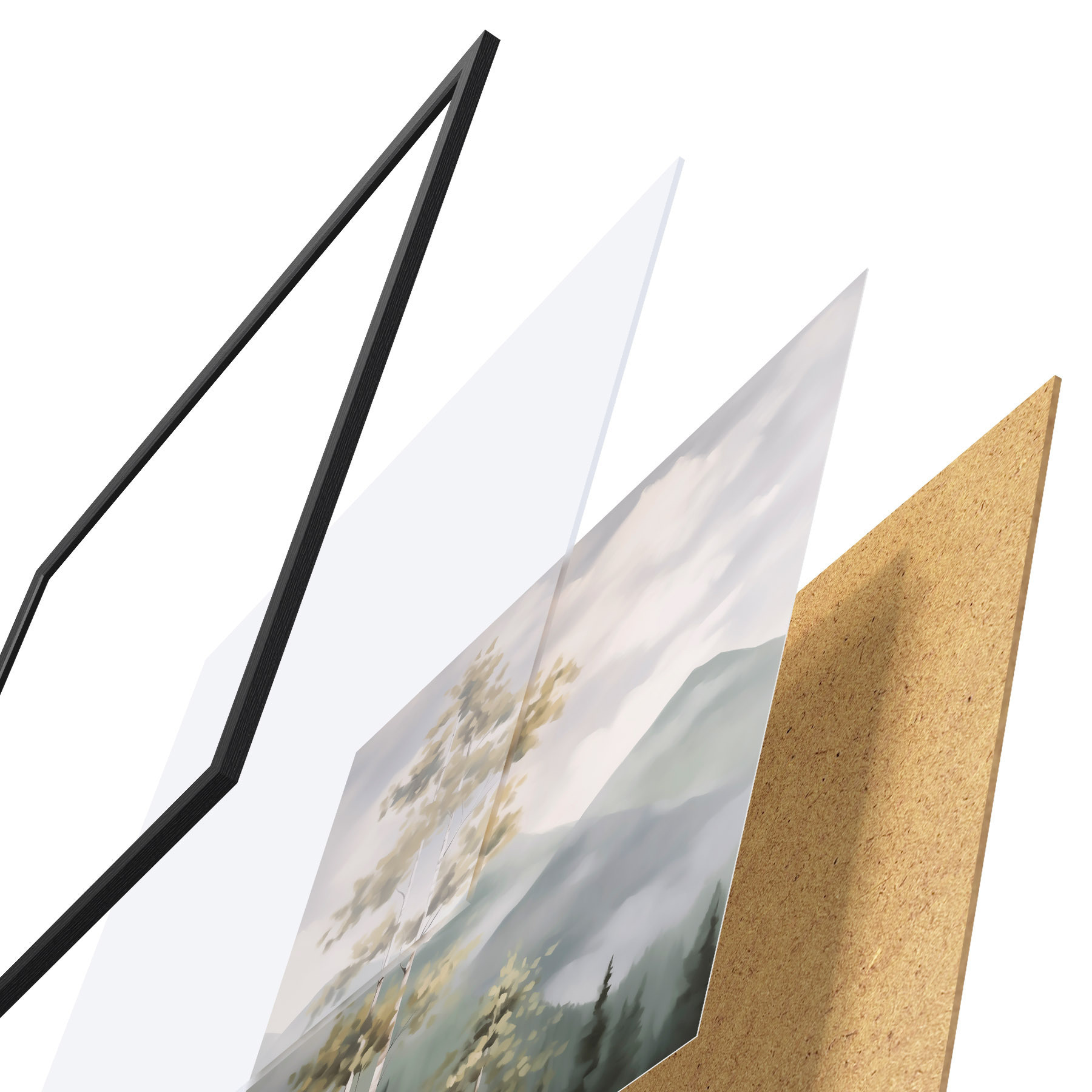 Plagát sa skladá z rámu, plexiskla, vytlačeného obrazu a podkladu z drevotriesky. Plagát možno okamžite zavesiť na stenu vďaka úchytom na zadnej strane.