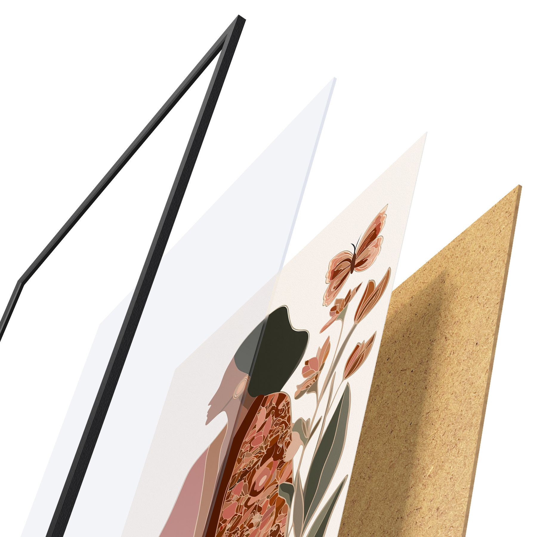 Plagát sa skladá z rámu, plexiskla, vytlačeného obrazu a podkladu z drevotriesky. Plagát možno okamžite zavesiť na stenu vďaka úchytom na zadnej strane.