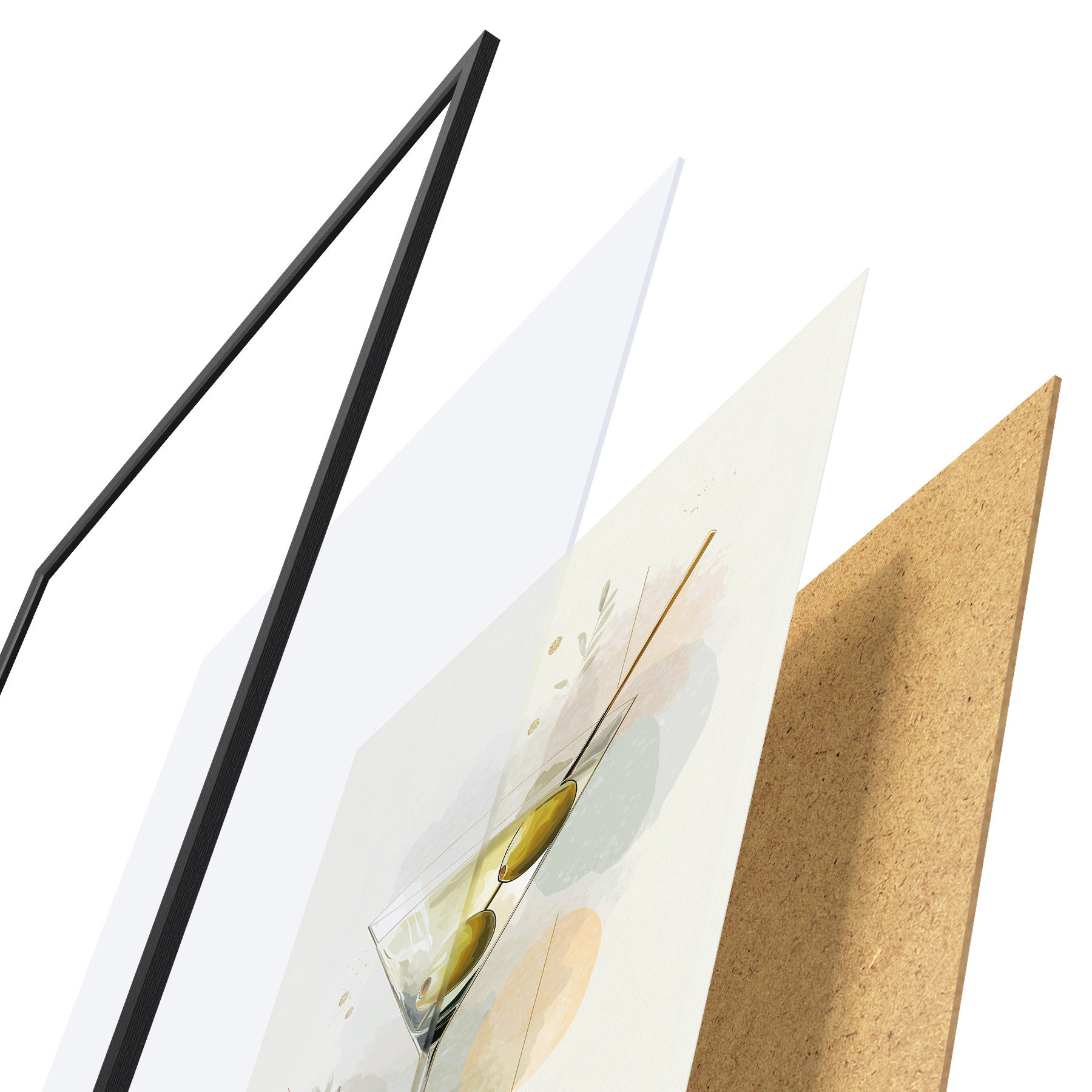 Plagát sa skladá z rámu, plexiskla, vytlačeného obrazu a podkladu z drevotriesky. Plagát možno okamžite zavesiť na stenu vďaka úchytom na zadnej strane.
