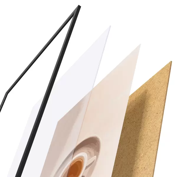 Plagát sa skladá z rámu, plexiskla, vytlačeného obrazu a podkladu z drevotriesky. Plagát možno okamžite zavesiť na stenu vďaka úchytom na zadnej strane.
