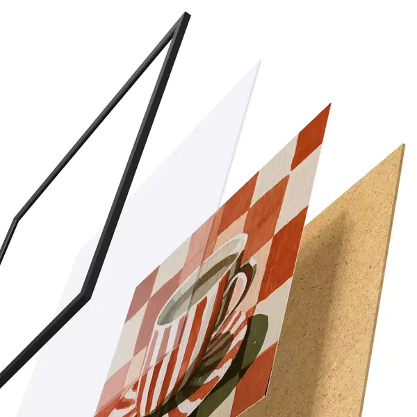 Plagát sa skladá z rámu, plexiskla, vytlačeného obrazu a podkladu z drevotriesky. Plagát možno okamžite zavesiť na stenu vďaka úchytom na zadnej strane.