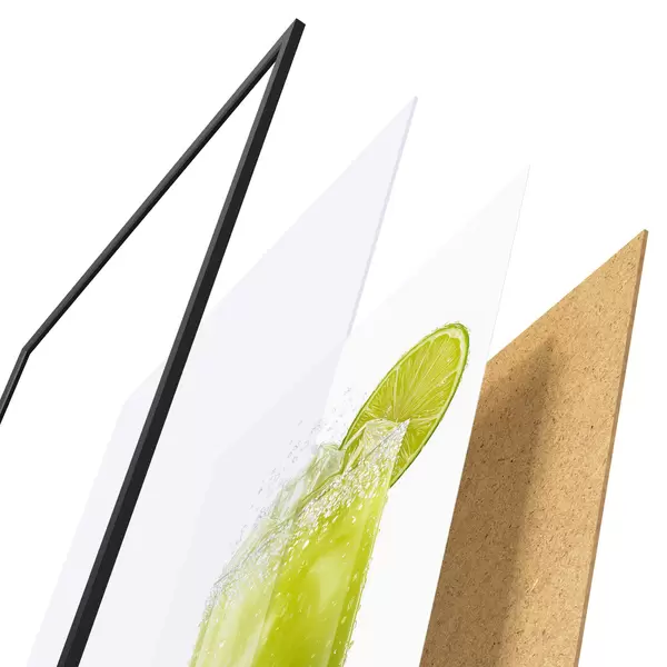 Plagát sa skladá z rámu, plexiskla, vytlačeného obrazu a podkladu z drevotriesky. Plagát možno okamžite zavesiť na stenu vďaka úchytom na zadnej strane.