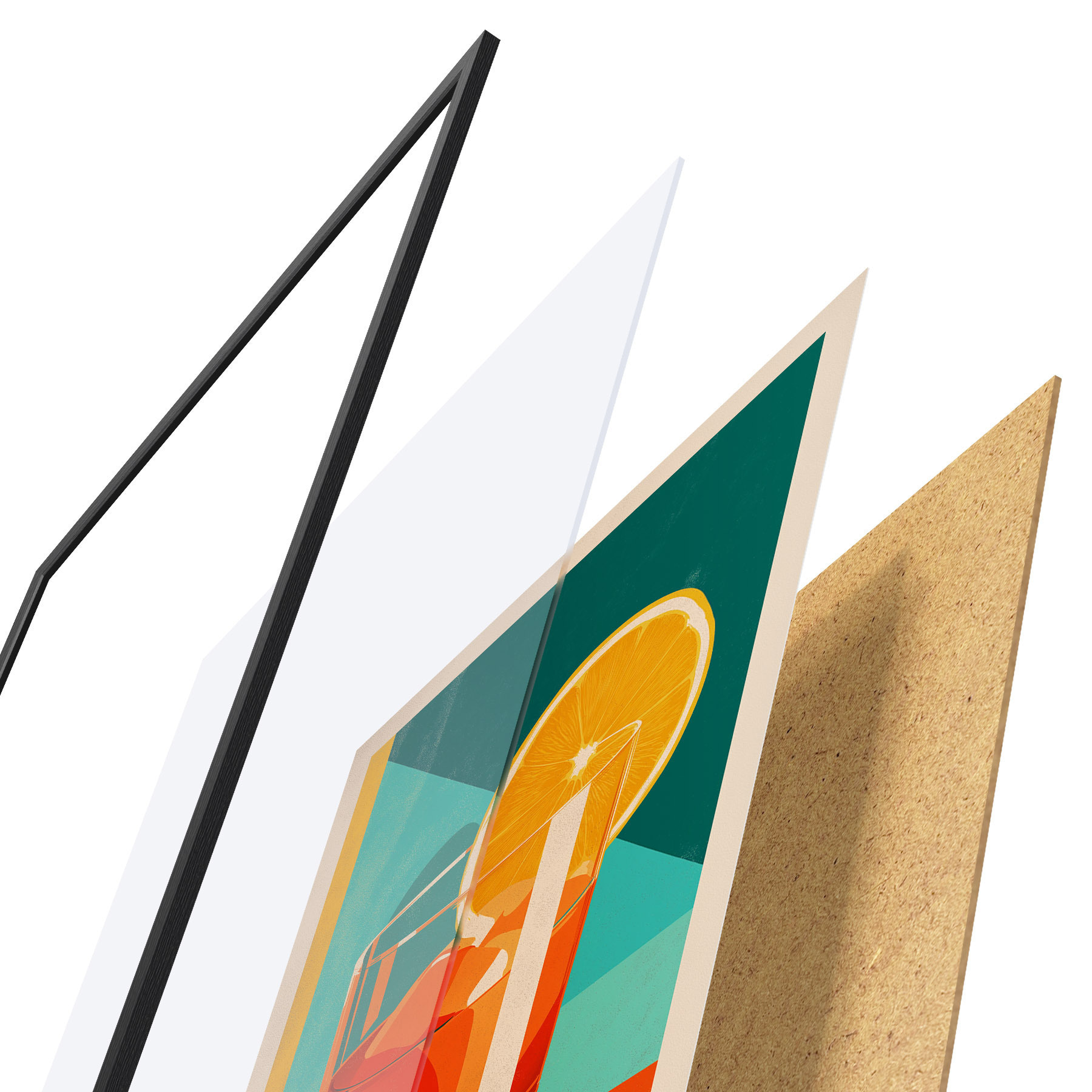 Plagát sa skladá z rámu, plexiskla, vytlačeného obrazu a podkladu z drevotriesky. Plagát možno okamžite zavesiť na stenu vďaka úchytom na zadnej strane.