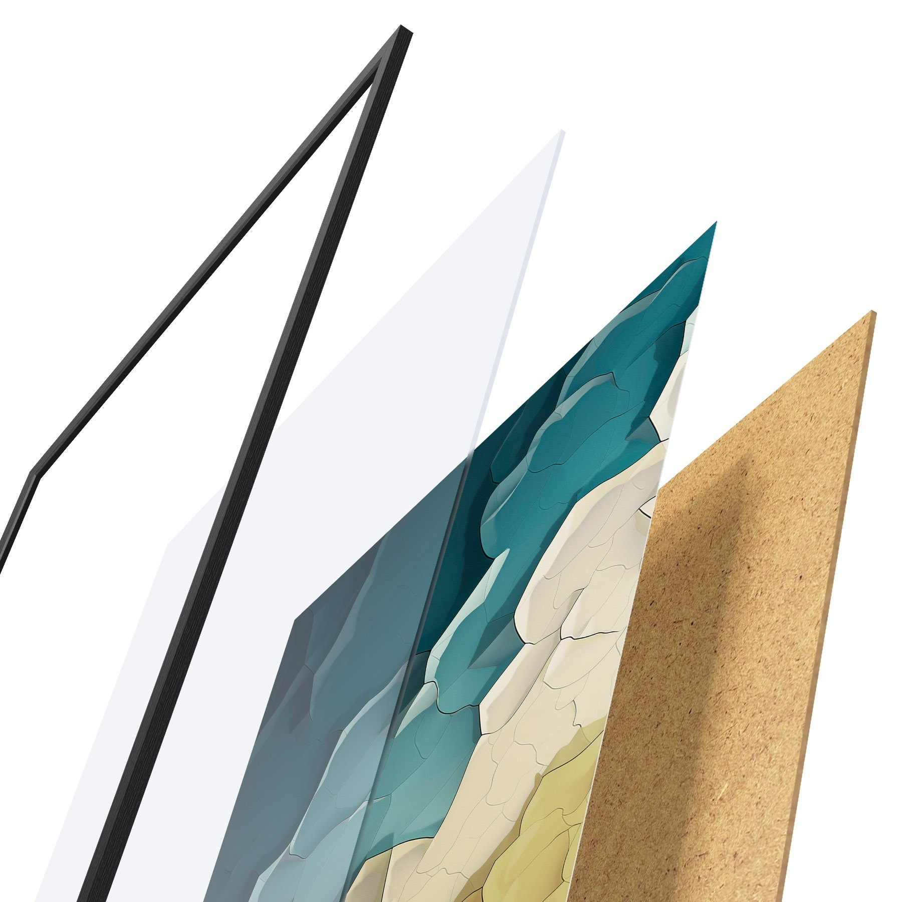 Plagát sa skladá z rámu, plexiskla, vytlačeného obrazu a podkladu z drevotriesky. Plagát možno okamžite zavesiť na stenu vďaka úchytom na zadnej strane.