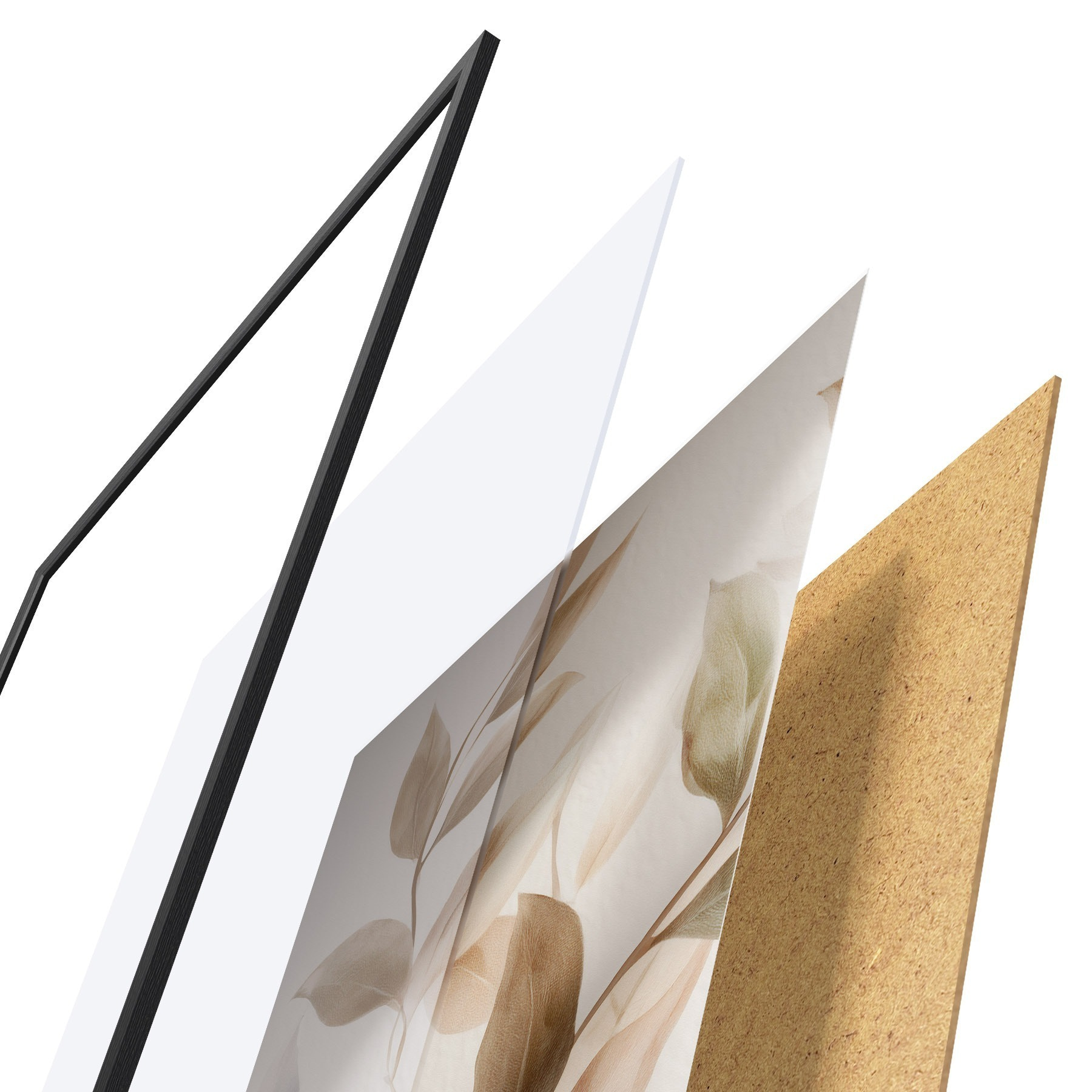 Plagát sa skladá z rámu, plexiskla, vytlačeného obrazu a podkladu z drevotriesky. Plagát možno okamžite zavesiť na stenu vďaka úchytom na zadnej strane.