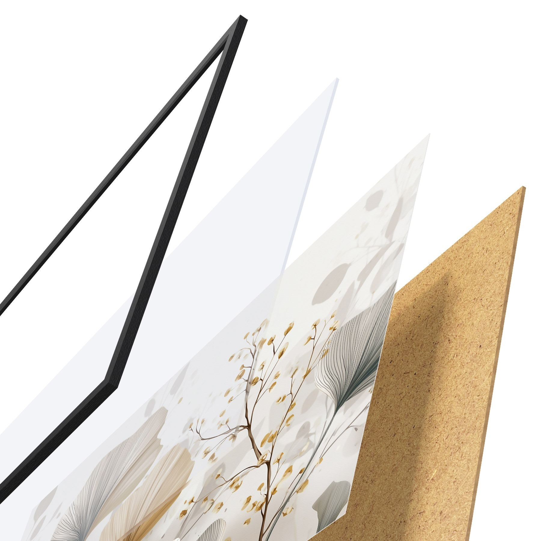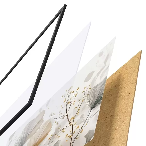 Plagát sa skladá z rámu, plexiskla, vytlačeného obrazu a podkladu z drevotriesky. Plagát možno okamžite zavesiť na stenu vďaka úchytom na zadnej strane.