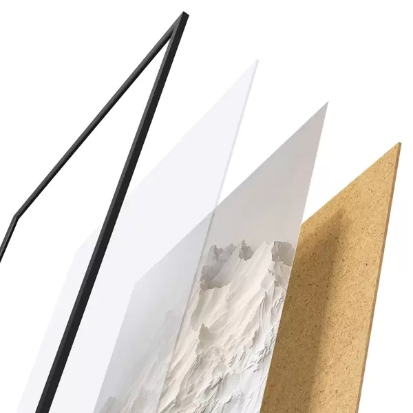 Plagát sa skladá z rámu, plexiskla, vytlačeného obrazu a podkladu z drevotriesky. Plagát možno okamžite zavesiť na stenu vďaka úchytom na zadnej strane.
