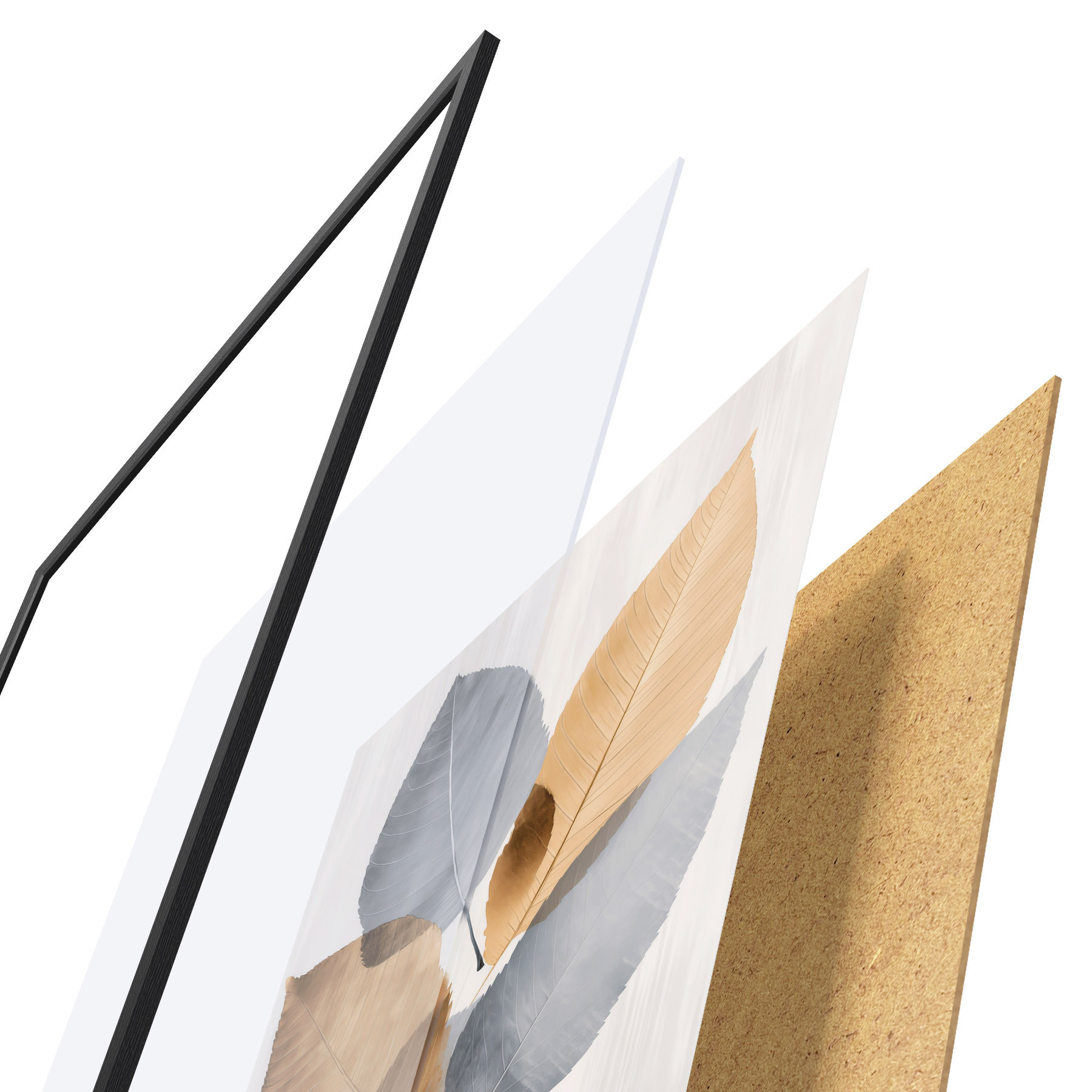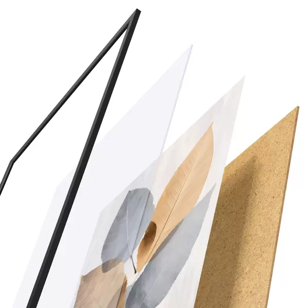 Plagát sa skladá z rámu, plexiskla, vytlačeného obrazu a podkladu z drevotriesky. Plagát možno okamžite zavesiť na stenu vďaka úchytom na zadnej strane.