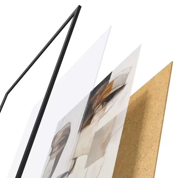 Plagát sa skladá z rámu, plexiskla, vytlačeného obrazu a podkladu z drevotriesky. Plagát možno okamžite zavesiť na stenu vďaka úchytom na zadnej strane.