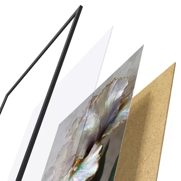 Plagát sa skladá z rámu, plexiskla, vytlačeného obrazu a podkladu z drevotriesky. Plagát možno okamžite zavesiť na stenu vďaka úchytom na zadnej strane.