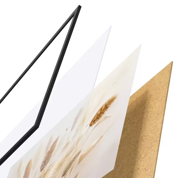Plagát sa skladá z rámu, plexiskla, vytlačeného obrazu a podkladu z drevotriesky. Plagát možno okamžite zavesiť na stenu vďaka úchytom na zadnej strane.
