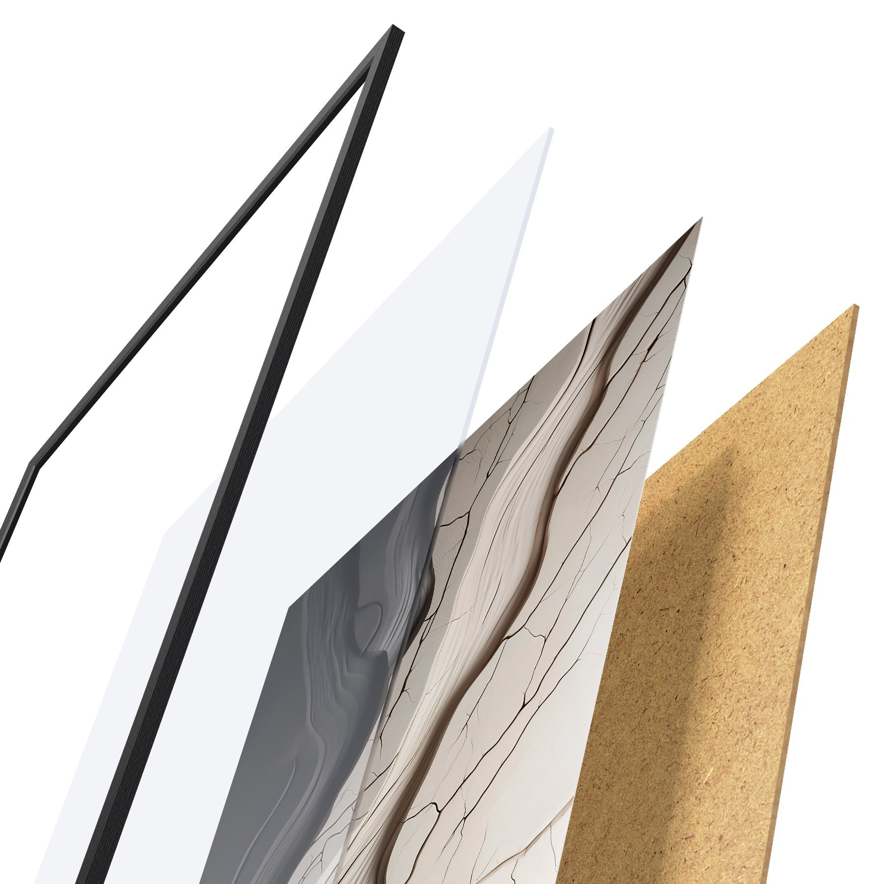 Plagát sa skladá z rámu, plexiskla, vytlačeného obrazu a podkladu z drevotriesky. Plagát možno okamžite zavesiť na stenu vďaka úchytom na zadnej strane.