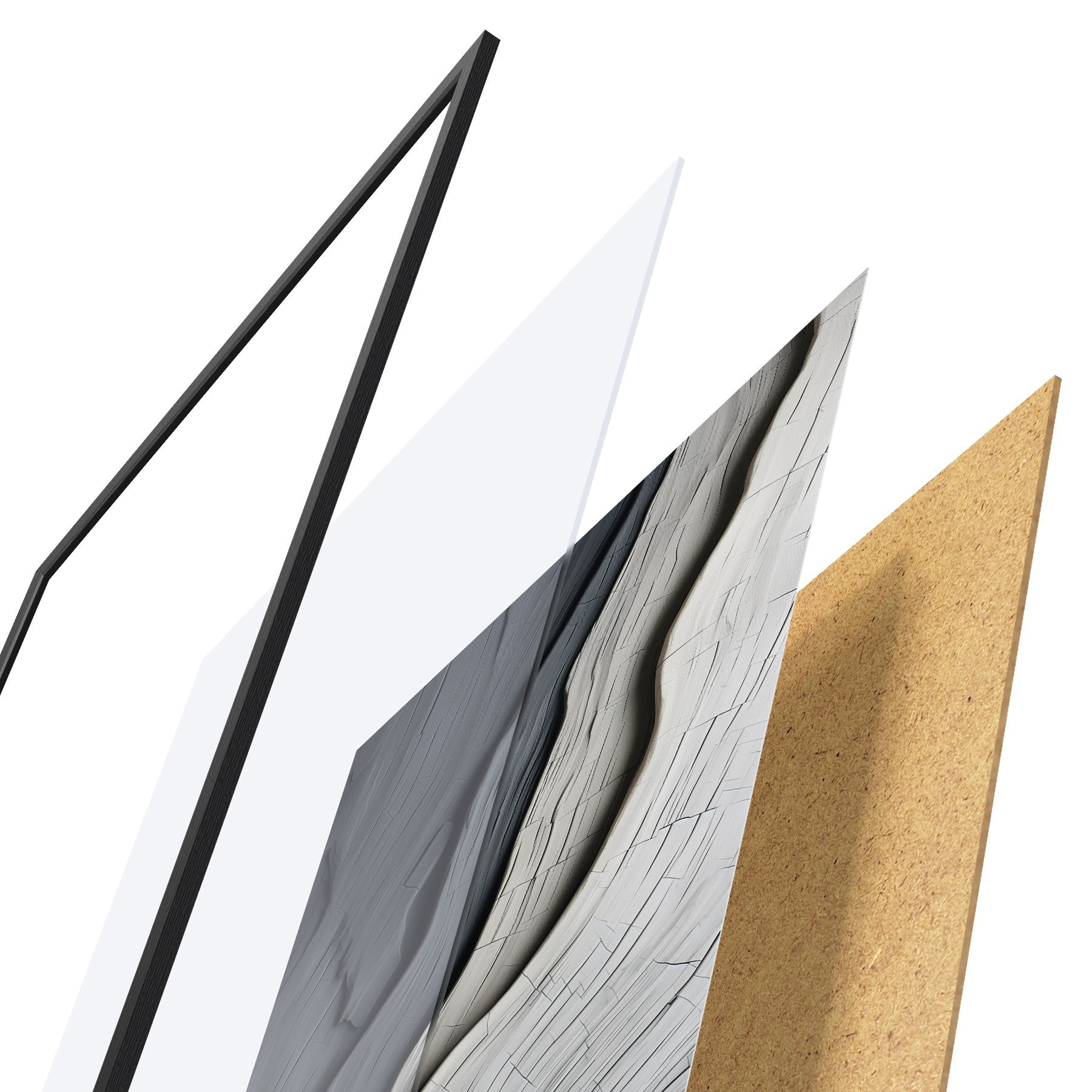 Plagát sa skladá z rámu, plexiskla, vytlačeného obrazu a podkladu z drevotriesky. Plagát možno okamžite zavesiť na stenu vďaka úchytom na zadnej strane.