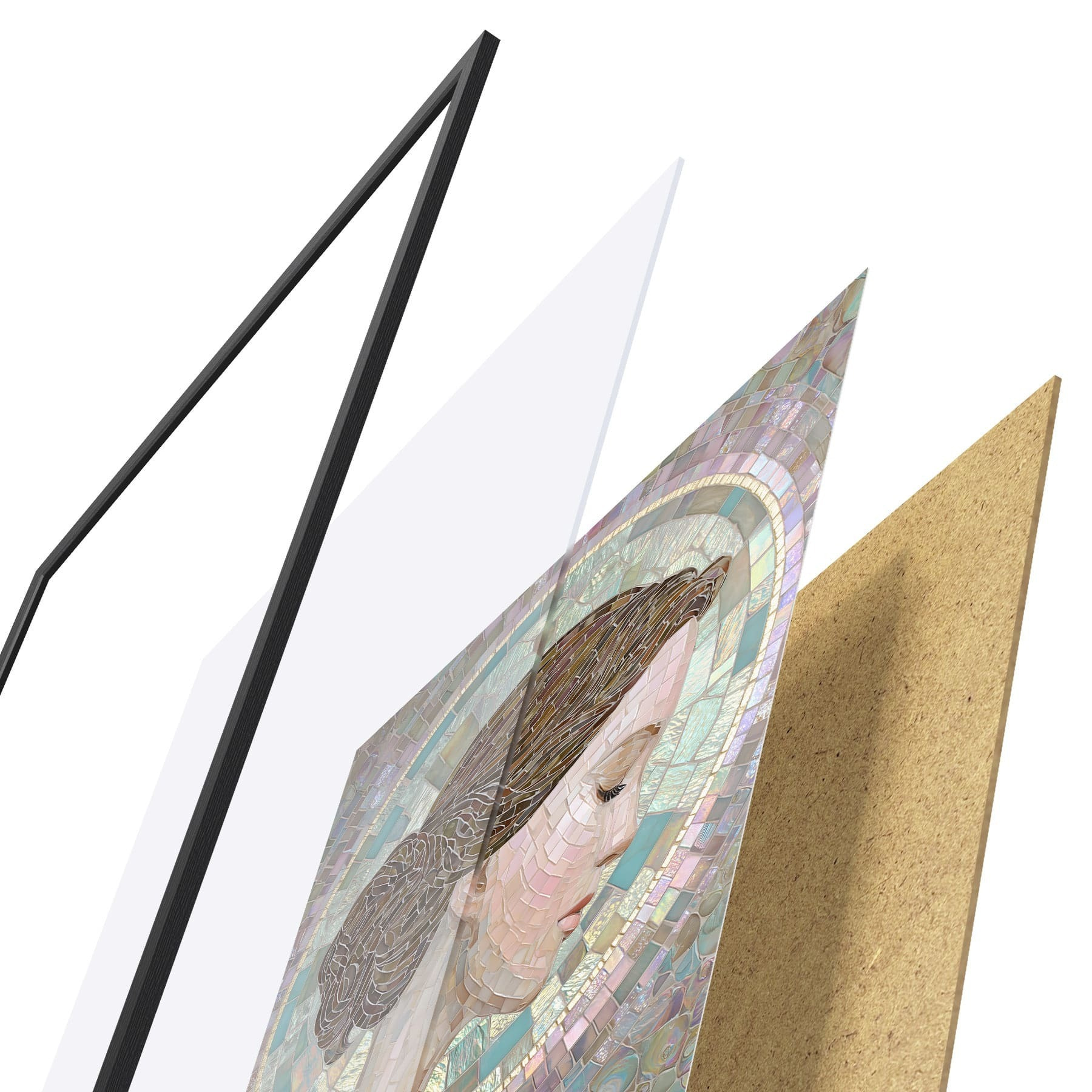 Plagát sa skladá z rámu, plexiskla, vytlačeného obrazu a podkladu z drevotriesky. Plagát možno okamžite zavesiť na stenu vďaka úchytom na zadnej strane.