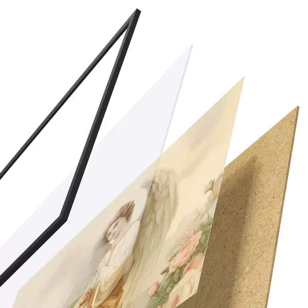 Plagát sa skladá z rámu, plexiskla, vytlačeného obrazu a podkladu z drevotriesky. Plagát možno okamžite zavesiť na stenu vďaka úchytom na zadnej strane.