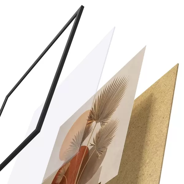Plagát sa skladá z rámu, plexiskla, vytlačeného obrazu a podkladu z drevotriesky. Plagát možno okamžite zavesiť na stenu vďaka úchytom na zadnej strane.