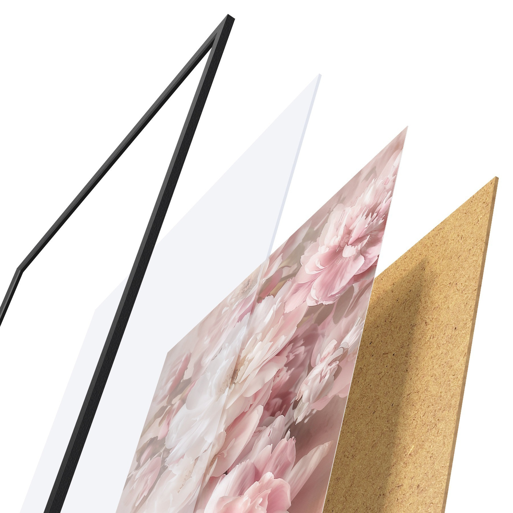 Plagát sa skladá z rámu, plexiskla, vytlačeného obrazu a podkladu z drevotriesky. Plagát možno okamžite zavesiť na stenu vďaka úchytom na zadnej strane.