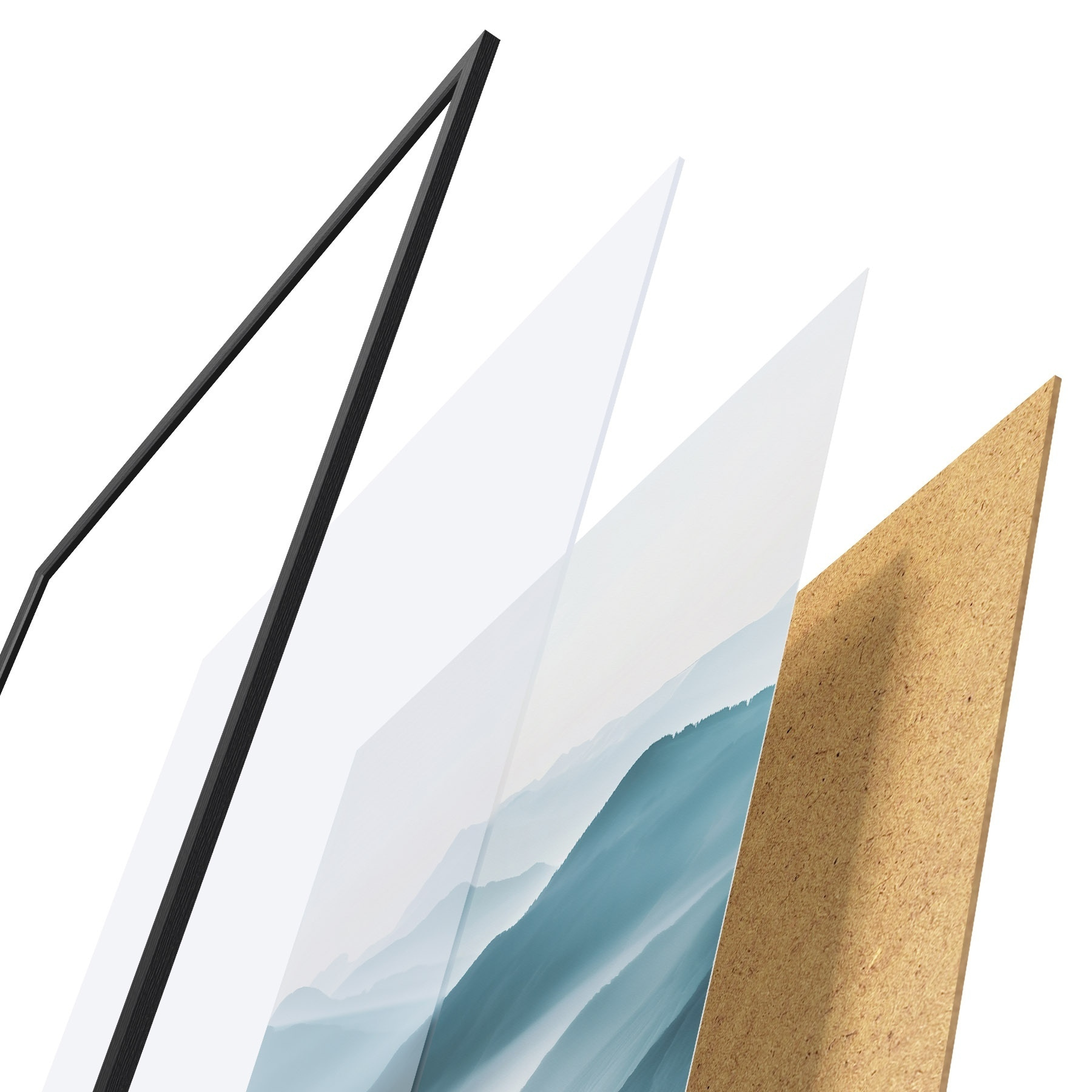 Plagát sa skladá z rámu, plexiskla, vytlačeného obrazu a podkladu z drevotriesky. Plagát možno okamžite zavesiť na stenu vďaka úchytom na zadnej strane.