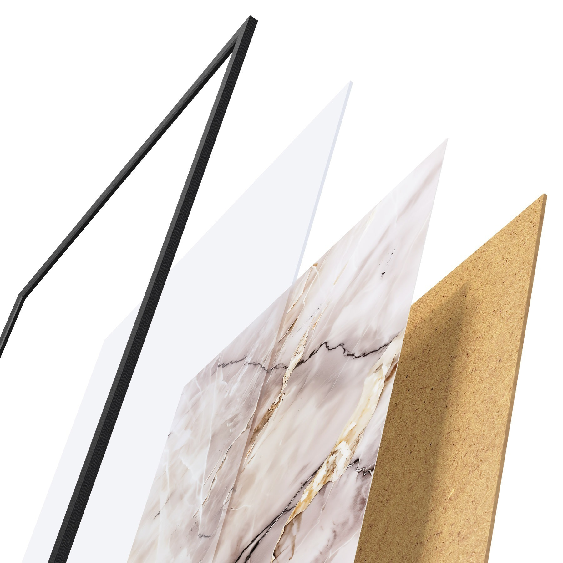 Plagát sa skladá z rámu, plexiskla, vytlačeného obrazu a podkladu z drevotriesky. Plagát možno okamžite zavesiť na stenu vďaka úchytom na zadnej strane.