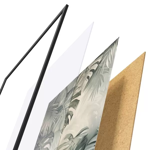 Plagát sa skladá z rámu, plexiskla, vytlačeného obrazu a podkladu z drevotriesky. Plagát možno okamžite zavesiť na stenu vďaka úchytom na zadnej strane.